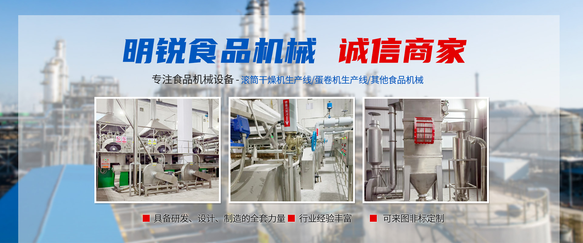東臺市明銳食品機(jī)械有限公司是一個從事食品機(jī)械設(shè)備設(shè)計、制造和安裝調(diào)試的專業(yè)廠家,在食品生產(chǎn)工藝、生產(chǎn)流程及設(shè)備設(shè)計和制造有著多年豐富經(jīng)驗。主要產(chǎn)品有蛋卷機(jī)生產(chǎn)系列,滾筒干燥機(jī)生產(chǎn)線系列以及其他食品機(jī)械。目前各種生產(chǎn)線規(guī)格齊全,國內(nèi)技術(shù)優(yōu)良,產(chǎn)品遠(yuǎn)銷亞洲各國及國內(nèi)二十多個省市自治區(qū)。
